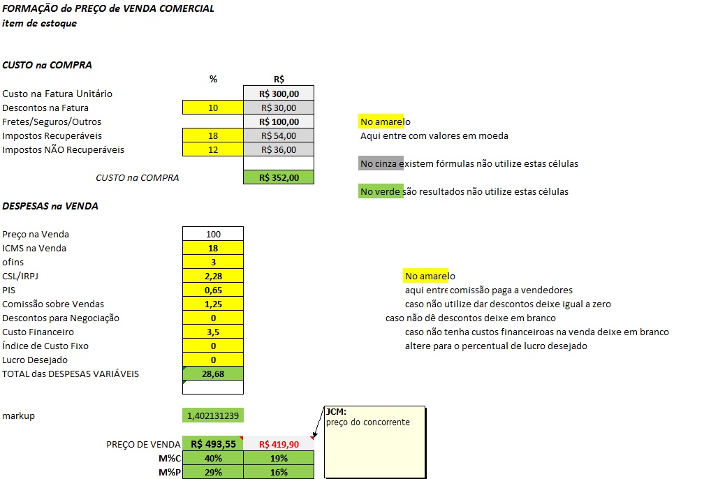 Uma das práticas gerenciais mais complexas, em qualquer organização, é DEFINIR SUA POLÍTICA DE PREÇOS de VENDA.Como se formam os preços?Qual o peso da influência do MERCADO nesta decisão?Em que medida a empresa pode considerar seus principais atributos, com preços diferenciados em relação à média?Qual posicionamento perseguir, no longo prazo, na linha de produtos?Esaas questões necessitam de diversas avaliações, pesquisas e informações, que apesar de nem sempre estarem disponíveis no curto prazo, na formação do preço de venda necessariamente tem de estar à mão.Face a a isso o "MERCADO" acaba sendo o balizador natural, talvez o único balizador de preços.O que ocorre é que essa prática na maioria das vezes não é coerente com as metas de resultados das empresas.Este é o objetivo deste CURSO, mostrar a realidade da operação comercial através:CUSTO na COMPRADESPESAS na VENDAmarkeupPREÇO de VENDA